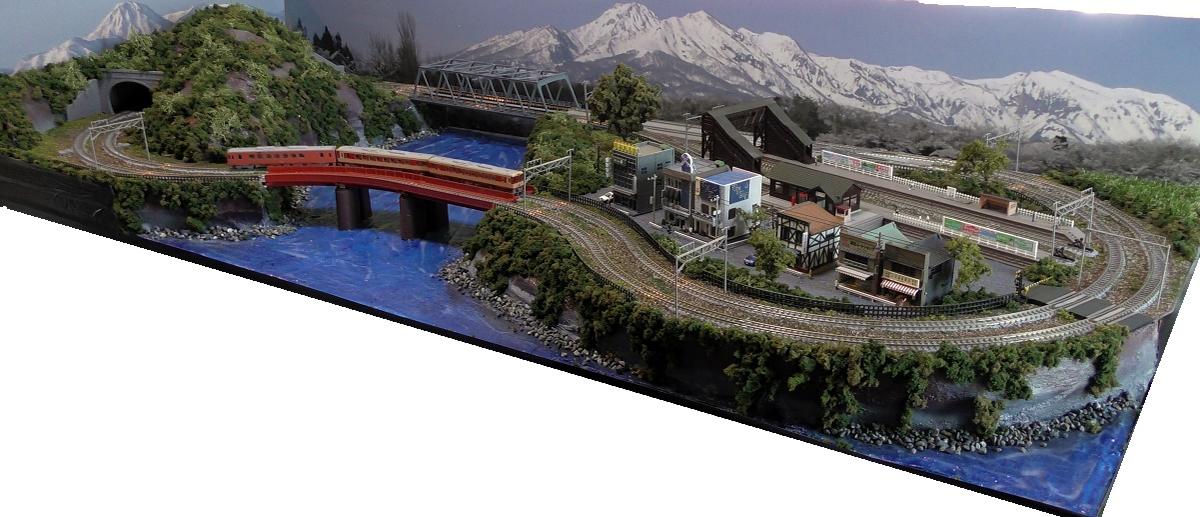 売却済 鉄道模型ジオラマ作品 分割式 完成品 Nゲージ地上2線 高架2線 1 8m X 1 2m 全国搬送無料 Nゲージ鉄道ジオラマ完成品販売