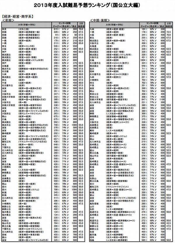 大学受験2013 河合塾 入試難易予想ランキング 11月最新版 3枚目の写真 画像 リセマム
