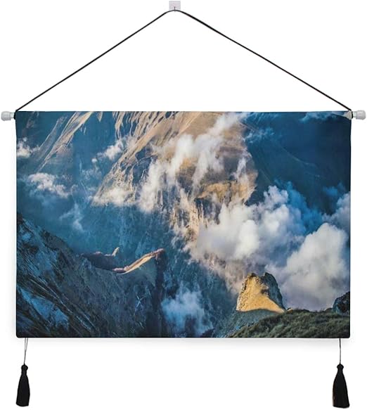 Amazon Co Jp Rosecny タペストリー 壁掛け布 山ehereal威厳のある自然の景色急な地形高い草原霧の霧浮かぶ ベッドルームリビングルームの壁アートデコレーションホーム装飾 Home Kitchen