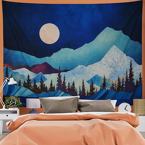 Amazon Co Jp G Will 山の景色タペストリー ムーンタペストリー 森のタペストリー ブルーナイト 壁掛け サイケデリックタペストリー トリッピータペストリー 天井壁 寝室用 78 7 59 1 ホーム キッチン
