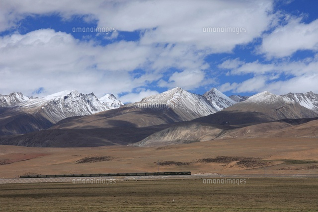 草原を走る青蔵鉄道と山 チベット 11019026895 の写真素材 イラスト素材 アマナイメージズ