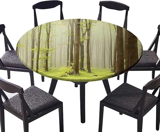 Amazon ピクニックサークルテーブルクロス 朝の霧 山 森林 秋 夜明け 家 フェンス 風景 家族のディナーや集まりに エラスティックエッジ 59 63 Round テーブルクロス オンライン通販