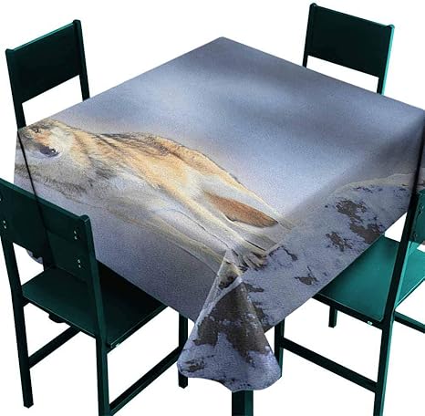 Amazon 暖かい家族 冬 汚れにくい テーブルクロス 木製 家 オーストリアの山 雪 森 コテージ 休日 デスティネーション キッチン ダイニング テーブルトップ 装飾 ブラウン ブルー ホワイト W50 X L50 テーブルクロス オンライン通販