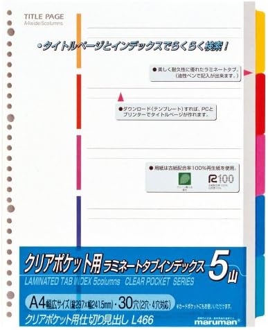Amazon Co Jp マルマン ラミネートタブインデックス A4サイズ2 4 30穴用 5山 クリアポケット用 L466 文房具 オフィス用品
