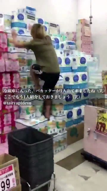動画 店で売られているトイレットペーパーの山を駆け上り落下 そのまま逃走し炎上 ゴゴ通信ゴゴ通信