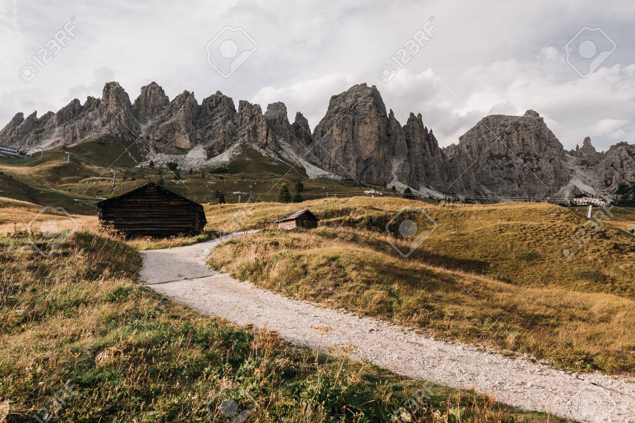 イタリア ドロミテの山渓谷 ヴァル ガルデーナ の家の田舎の風景 の写真素材 画像素材 Image 90606556