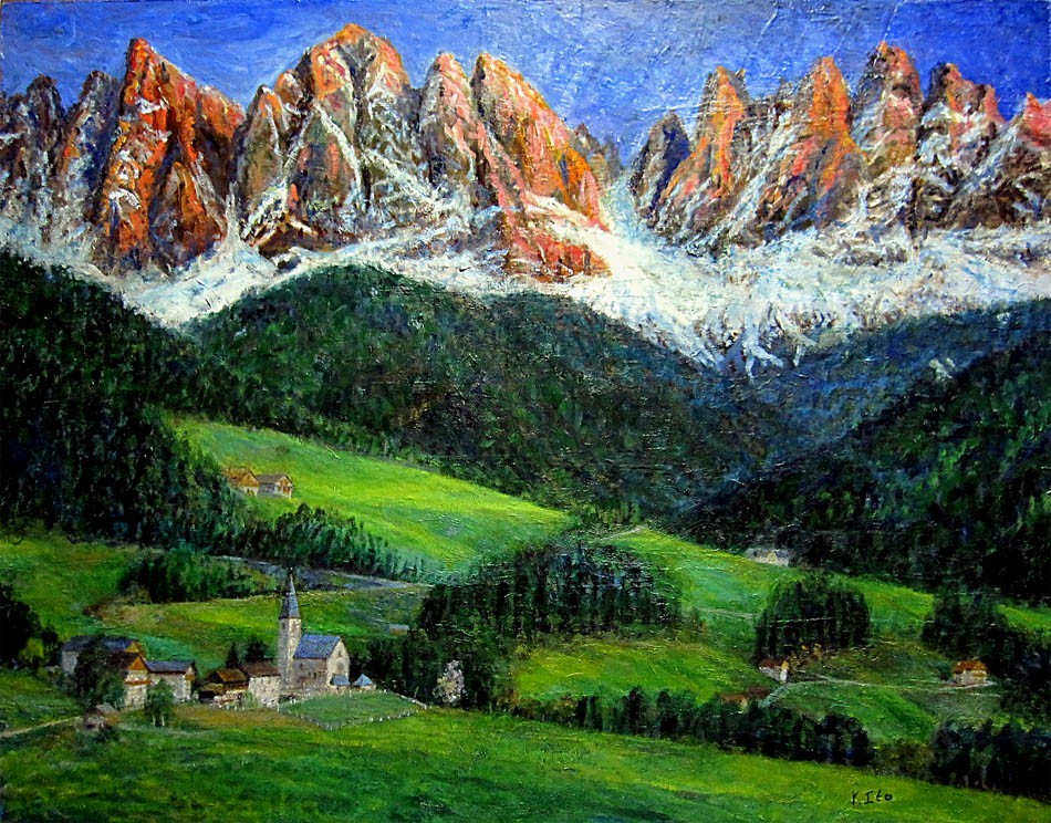 北イタリア湖水地方とドロミテ 8 ドロミテのガイスラー山群麓のサンタ マッダレーナ村 上海下町写真館2014