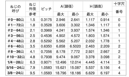 ネジログ インチねじサイズ表 ネジの豆知識ネジログ