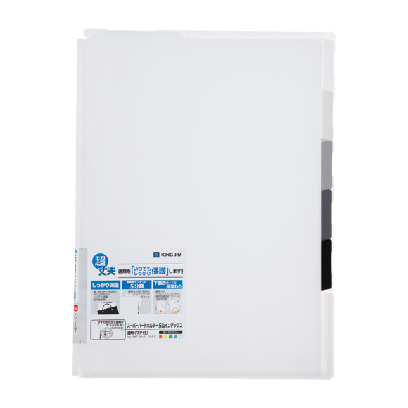スーパーハードホルダー5山インデックスワイドオープン透明ヨコ 大きく開くから書類の出し入れが簡単 スーパーハードホルダー透明マチ付A4 13サイズ.