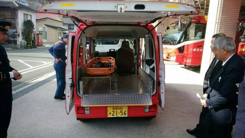 軽資機材搬送車両が寄贈されました イベント情報 八幡浜地区施設事務組合消防本部 消防署