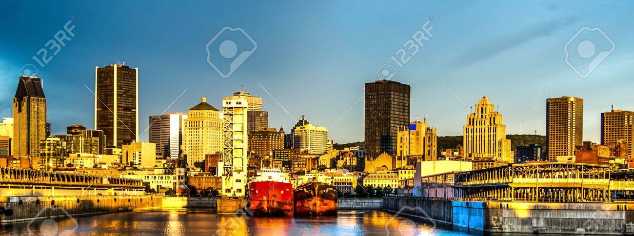 モントリオール背景 Hdr 画像ノイズの数値のダウンタウンと ポートの一部の夜明けの太陽の反射 の写真素材 画像素材 Image 17412285
