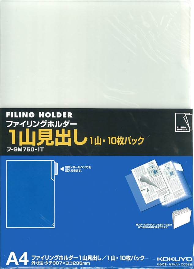 Amazon コクヨ ファイリングホルダーa4 1山見出し 10枚 フ Gm750 1t クリアホルダー 文房具 オフィス用品