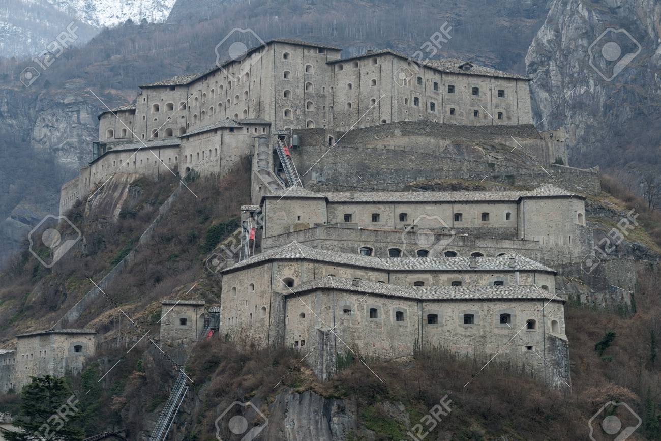 イタリア アオスタバレーのフォートバード要塞複合施設の眺め の写真素材 画像素材 Image 94453487