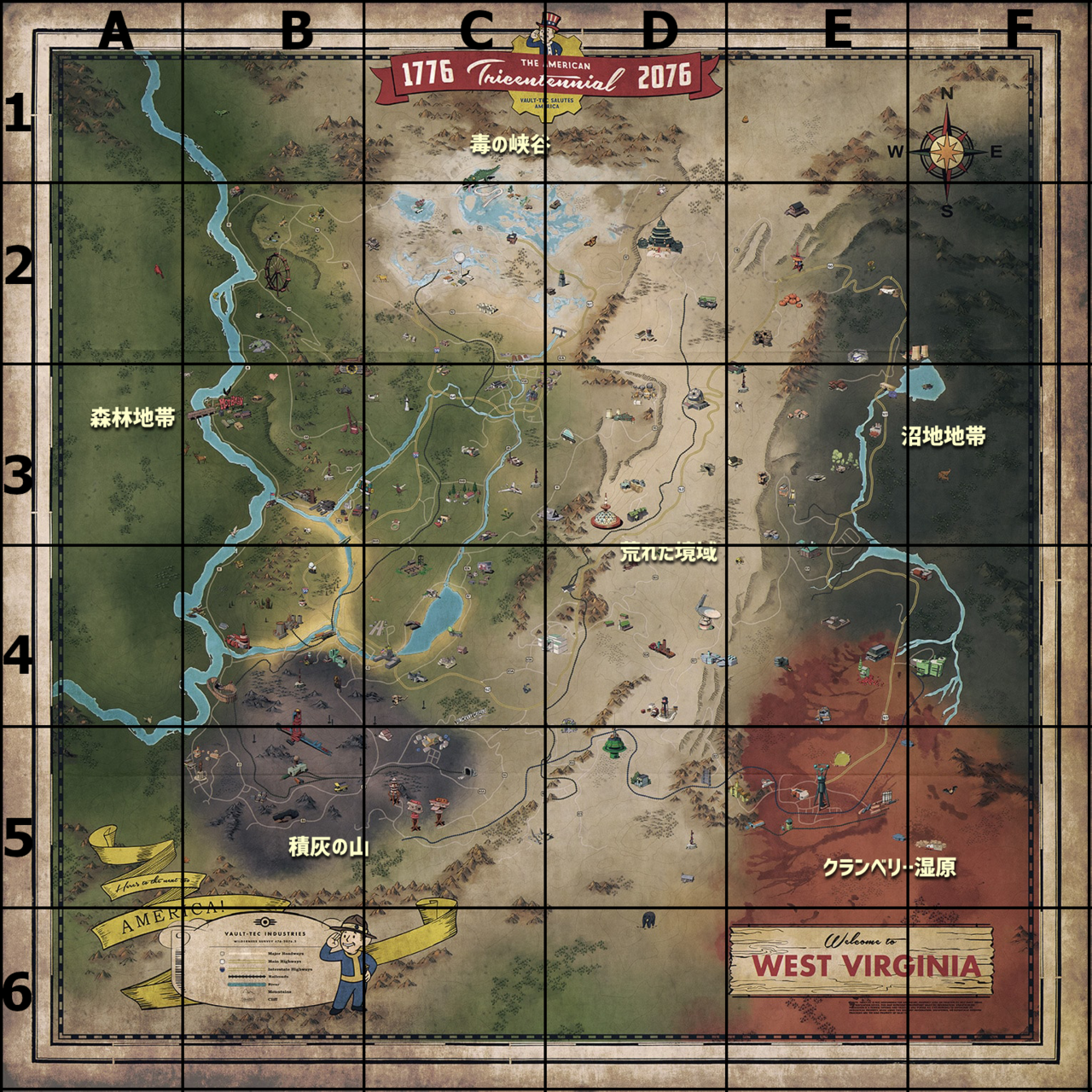Fallout76 アパラチア全体図 グリッド付 瀧廉太郎 Note