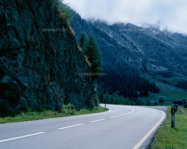 山ろくのカーブした山道 10381000077 の写真素材 イラスト素材 アマナイメージズ