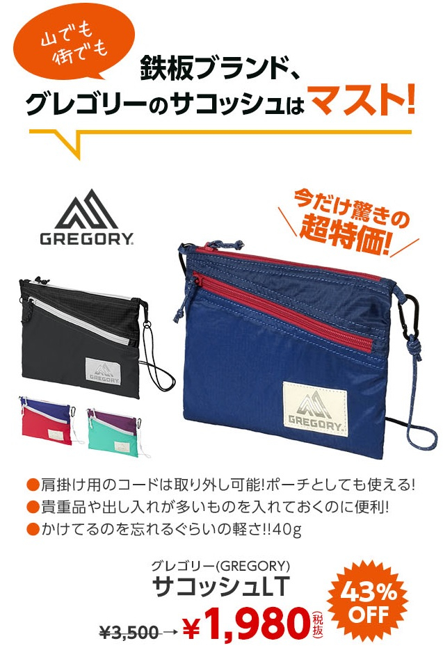 好日山荘 姫路駅前店 山でも街でも鉄板ブランド グレゴリーのサコッシュはマスト です