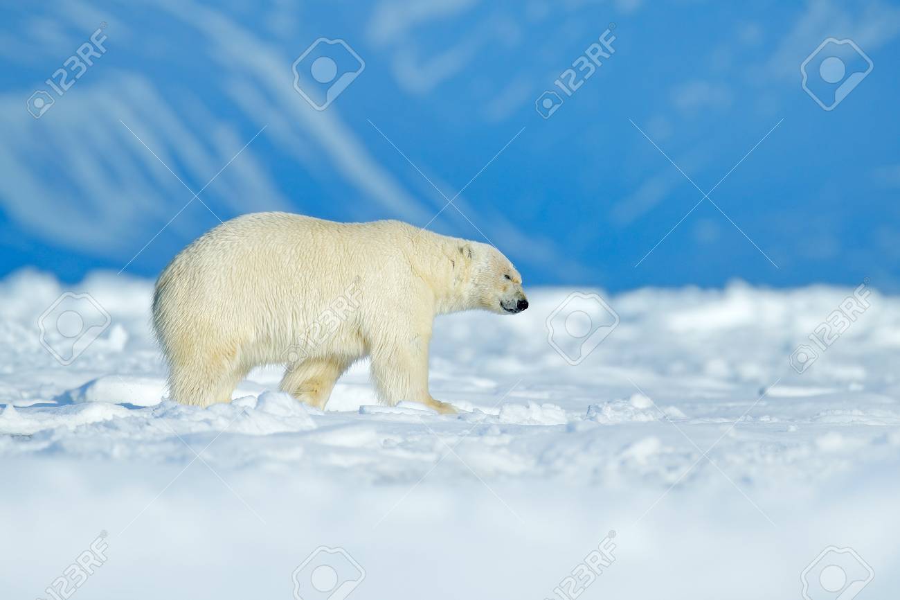 シロクマ 氷の上を歩きます シロクマ 北カナダの雪と氷の上危険な獣 自然から野生動物のシーン シロクマと冬は寒い 背景の動物 山 の写真素材 画像素材 Image 91827738