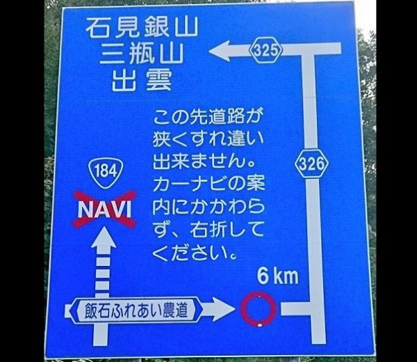 国道 カーナビの言うことを無視しろ 島根にある珍標識 バイクと