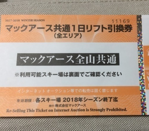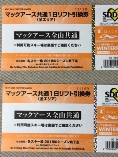 商談中 高鷲スノーパーク 全日共通1日リフト券 マックアース共通券 2枚 まさ みよしのスポーツの中古あげます 譲ります ジモティーで不用品の処分