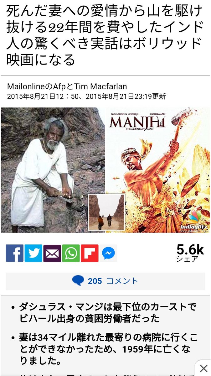 インドの55キロ離れた病院に行けず妻を亡くしたのを機に22年間ハンマーで岩を削り続け道を開削し英雄になった男 Togetter