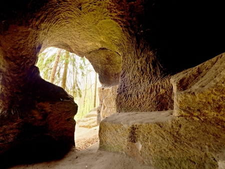 洞窟の終わり 地下洞窟やカタコンベへ入力します 砂岩のトンネルを通って地下鉄の旅 の写真素材 画像素材 Image 77134676